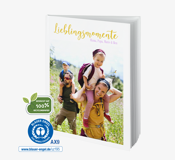 Dank des verstärkten, matten Hardcover-Einbands mit Recyclingpapier sind Ihre Erinnerungen jetzt noch besser geschützt.